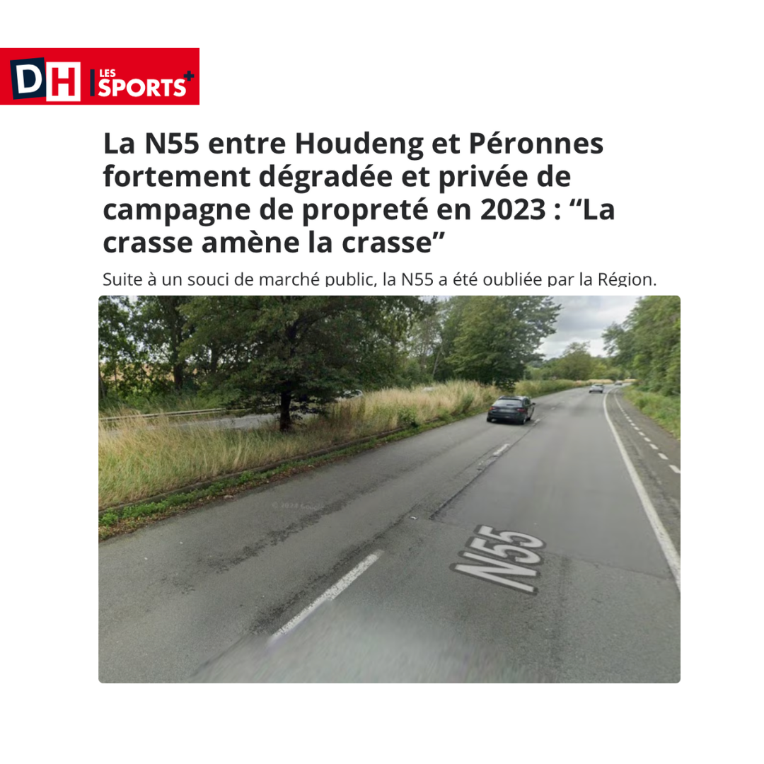 Avec un orniérage visible à l'œil nu et de très nombreux nids-de-poule, la route est en très mauvais état, en particulier entre le rond-point de Péronnes et le carrefour de la Tondrée, rendant la circulation dangereuse la nuit ou par temps de pluie ! À cela s'ajoute la saleté permanente de ce tronçon de la N55, en permanence jonché de...